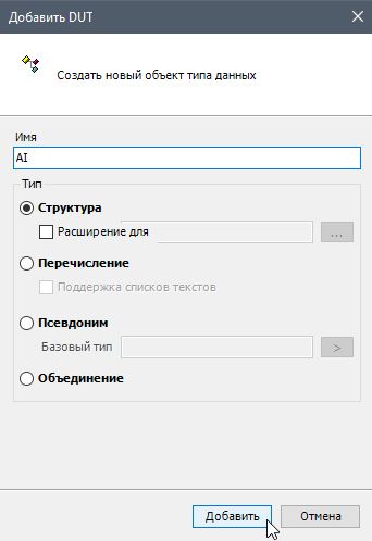 9. Укажите название структурного типа "AI" и нажмите кнопку "Добавить".