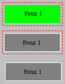 Если для входа заблокирована возможность управления через HMI, у кнопки-индикатора появится штриховая рамка красного цвета.