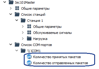Для просмотра параметров статистики модуля подключитесь к Astra.Server приложением статистики и выберите в дереве модуль Опросчик МЭК 60870-5-101.