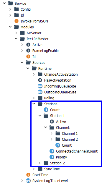 Service.Modules.IEC-104 Master.Sources.Runtime.Stations.Station <Номер станции>.Channels.Channel <Номер канала>.<Имя сигнала>