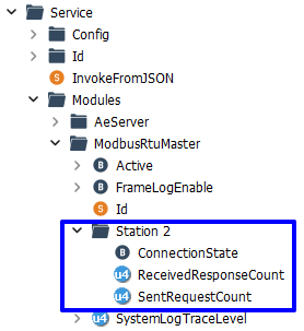 Модуль Modbus RTU Master динамически создает для каждой подчиненной станции служебные сигналы для контроля состояния связи, количества запросов и ответов. Права доступа к служебным сигналам – только чтение.