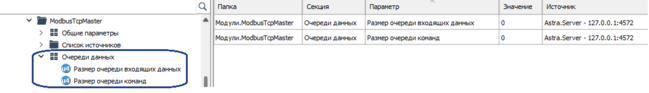 Статистическая информация модуля о размере очереди данных представлена в группе Очереди данных: