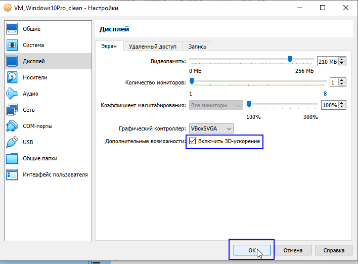 3. Установите флаг "Включить 3D-ускорение" и далее нажмите кнопку "ОК".