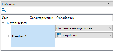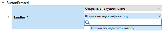 Тип обработчика "Открыть в текущем окне" применяется для открытия экранной формы в текущем окне.