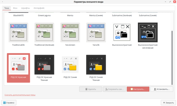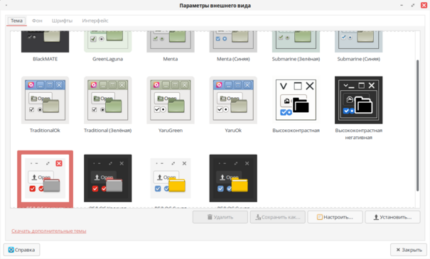 2. В открывшемся окне выберите тему, в которой отображается кнопка закрытия окон: