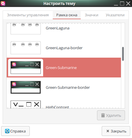 Названия типов рамок окна, в которых отображаются кнопки закрытия окон, совпадают с названиями тем, описанных выше.