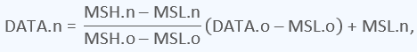 Эти данные будут пересчитываться вместе с управляющим выходом (MV) при возникновении изменений в верхнем/нижнем пределах шкалы (MV). Формула пересчета следующая: