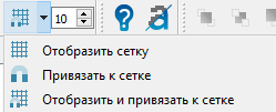 Содержит параметры отображения и привязки к сетке или отступить от сцены.