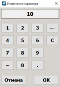 Чтобы задать параметр, дважды нажмите на поле с отображаемым значением параметра. В открывшемся окне введите требуемое значение, нажмите кнопку ОК и подтвердите изменение значение.