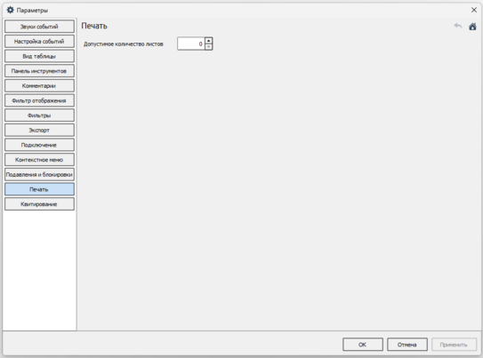 4.5.2.1.1.1.12. Печать Чтобы ограничить количество допустимых листов для печати, задайте Допустимое значение в окне Параметры.