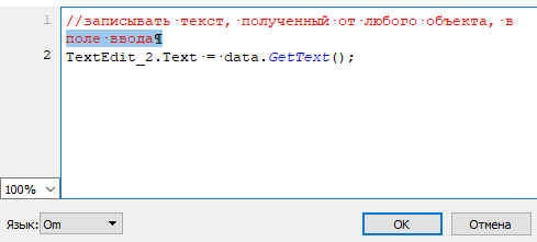 2. В обработчике события MousePress объекта-отправителя укажите передаваемые данные с помощью функции SetText (SetHtml) элемента Перемещение.