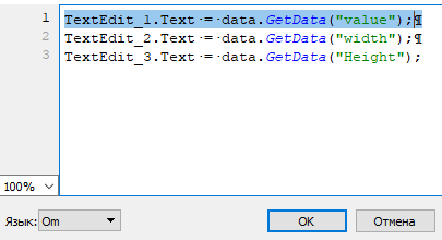 4. На стороне объекта-получателя в обработчике события OnDrop элемента Перемещение настройте обработку полученного массива с помощью функции GetDataAt параметра data. Для каждого элемента массива используйте свою функцию GetDataAt.
