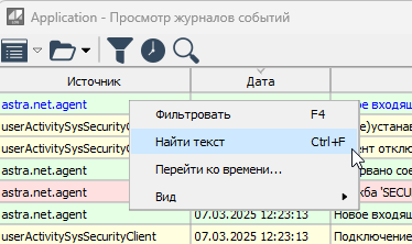 Для поиска событий по тексту сообщения, выполните следующие действия: