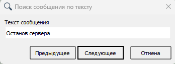 2. В окне "Поиск сообщения по тексту" введите текст сообщения и нажмите кнопку "Следующее", чтобы просмотреть события, которые произошли раньше, или кнопку "Предыдущее", чтобы посмотреть более поздние события.
