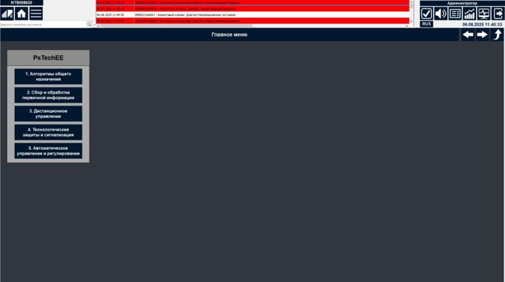 Произойдет переход на выбранную мнемосхему.