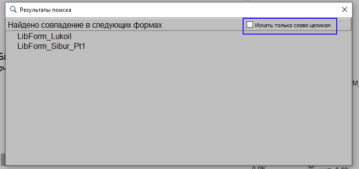 3. Откроется диалоговое окно с результатами поиска. Если наименование тега есть на какой-нибудь мнемосхеме проекта, то она будет добавлена в перечень мнемосхем результатов поиска.