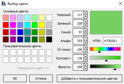 Добавить цвет в список пользовательских можно, расширив диалоговое окно и нажав кнопку Добавить к пользовательским цветам.