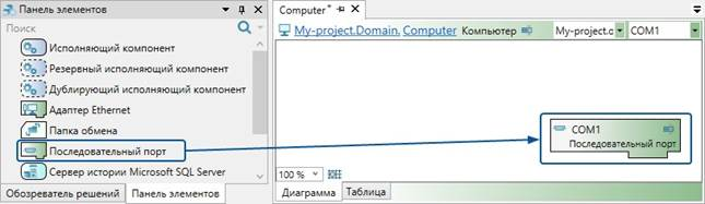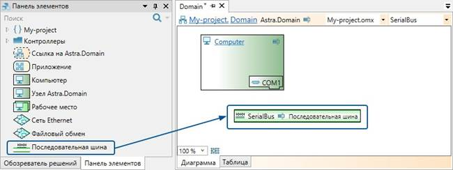 2. В домен добавьте элемент "Последовательная шина" из панели элементов.