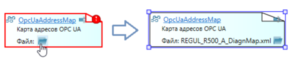 10. Перейдите в Приложение. У объекта "Карта адресов OPC UA" укажите созданный файл.