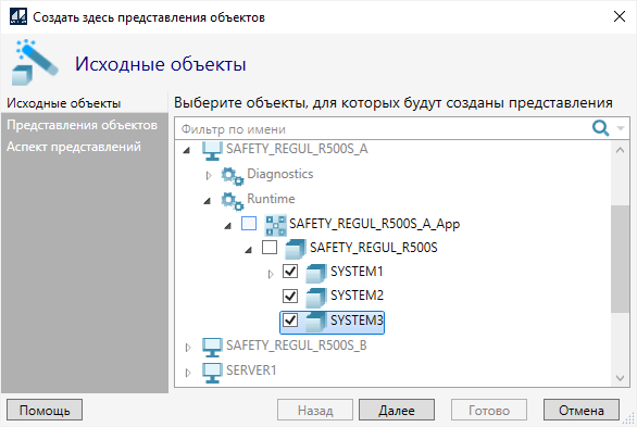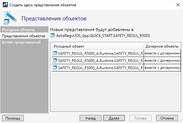 8. Отметьте все логические объекты приложения ПЛК SAFETY REGUL и нажмите кнопку "Далее".
