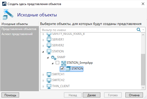 12. Отметьте логический объект диагностики "STATION" и нажмите кнопку "Далее".