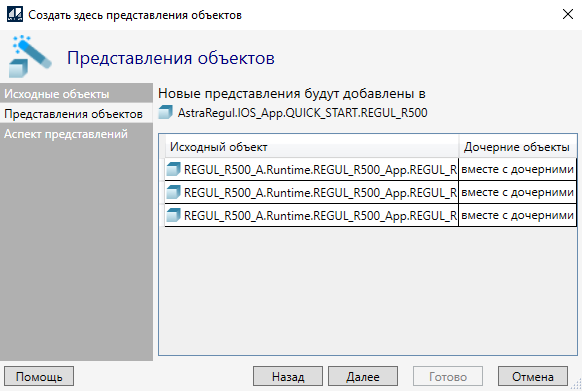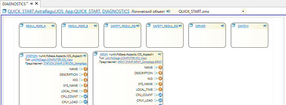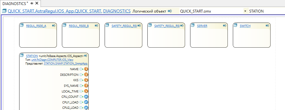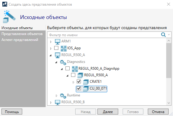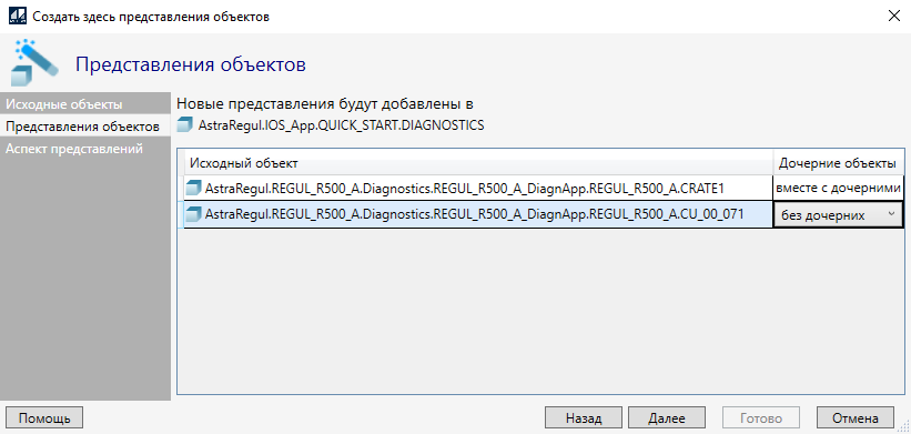 Добавление представления объектов для диагностики ПЛК А завершено.