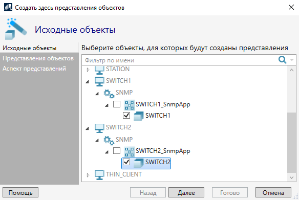 Добавление представления объектов для диагностики коммутаторов завершено.