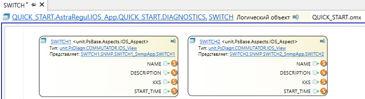 17. Отметьте логический объект диагностики "SWITCH1" и "SWITCH2".