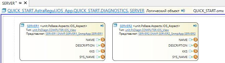 20. Аналогичным образом необходимо добавить представление объектов "SERVER1" и "SERVER2" в логический элемент "SERVER".