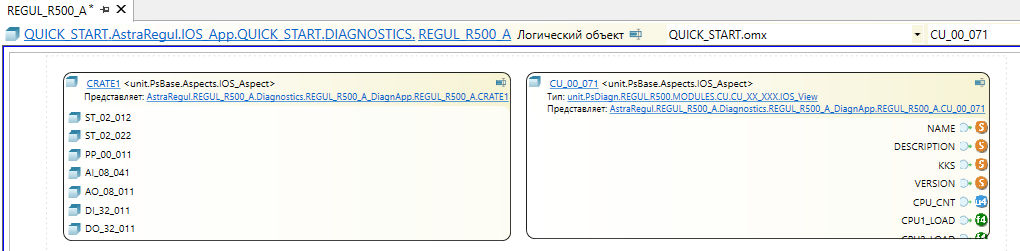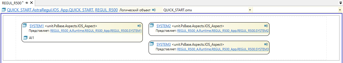 21. Перейдите в логический объект "REGUL_R500_A". Кликните правой кнопкой мыши по свободной рабочей области и в контекстном меню выберите команду "Создать здесь представления объектов".