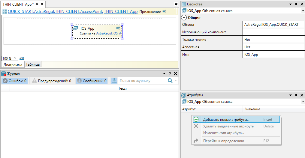 Перетащите в рабочую область домена из "Панели элементов" компонент "Приложение".Рекомендуется задать Имя приложения IOS_App.