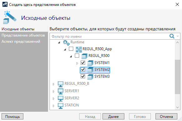4. Отметьте все логические объекты приложения ПЛК REGUL и нажмите кнопку "Далее".