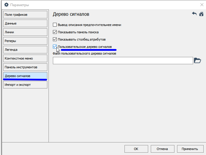 Для того, чтобы применить файл пользовательского дерева сигналов, выполните следующие действия: