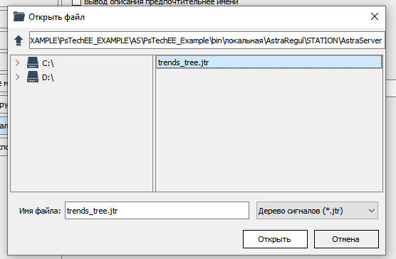 3. Укажите путь до пользовательского дерева сигналов в формате *.json или *.jtr и нажмите кнопку «Открыть»