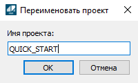 Чтобы переименовать проект, в меню Проект выберите "Переименовать...". В открывшемся окне задайте новое имя проекта.