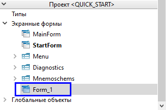 Чтобы создать новую форму, выберите в меню Проект команду "Создать". Новая форма будет добавлена в раздел Экранные формы проекта.