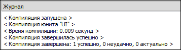 Весь процесс, а затем результат компиляции отображаются в области Журнал.