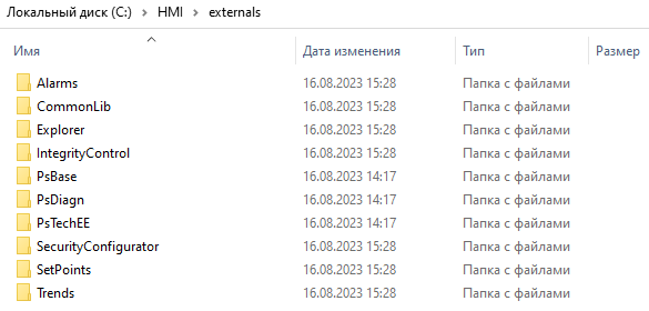 Компоненты расширения добавляются в проект Astra.HMI в виде внешних модулей и располагаются в папке externals.