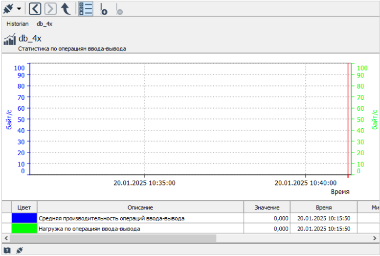 Нажмите одноименную строку в списке параметров статистики. Откроется страница просмотра статистики по операциям ввода-вывода в виде графиков.