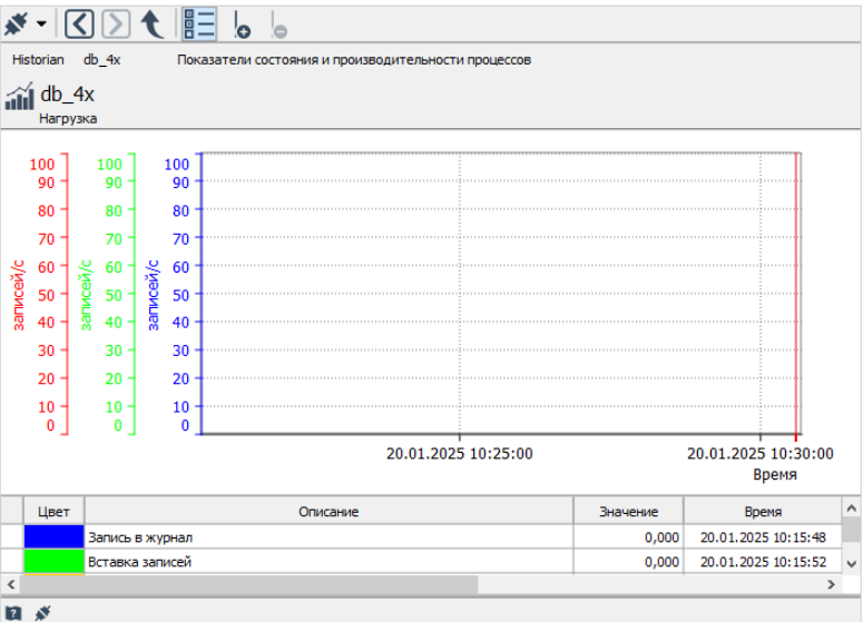 Отсюда можно перейти к странице, на которой можно отследить нагрузку на базу в текущий момент в виде графиков. Для этого нажмите строку Нагрузка в списке показателей.