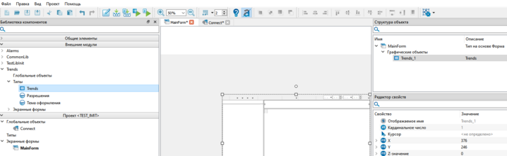 4. Добавьте из вкладки «Внешние модули» экземпляр типа Trends на мнемосхему.