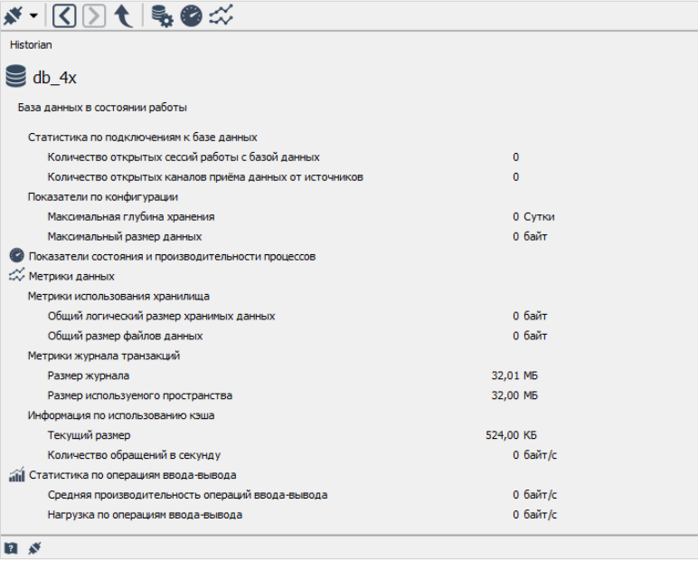 Чтобы ознакомиться с информацией о подключенной к текущему серверу истории базе данных, перейдите к странице просмотра информации о сервере, а затем нажмите на название базы в списке. Откроется страница просмотра статистики по выбранной базе данных.