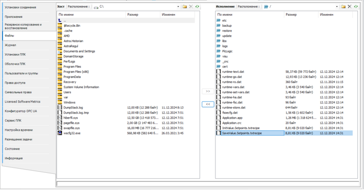3. Выберите директорию, куда будет скопирован файл SaveValue.Setpoints.txtcipe c вашего ПЛК, а после , выбрав файл, нажмите на кнопку <<.