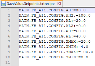 4. Откройте файл в текстовом редакторе (например Notepad++). Информация об действующий уставках будет отображаться в следующем виде.