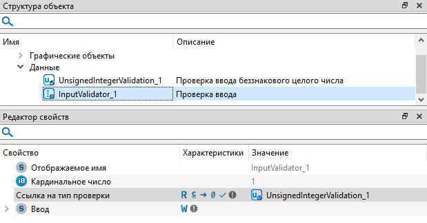 2. Добавьте на рабочую область компонент библиотеки Проверка ввода и сошлитесь в свойстве Ссылка на тип проверки на условие валидации, созданное в предыдущем шаге.