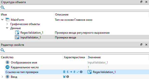 2. Добавьте на рабочую область компонент библиотеки Проверка ввода и сошлитесь в свойстве Ссылка на тип проверки на условие валидации, созданное в предыдущем шаге.