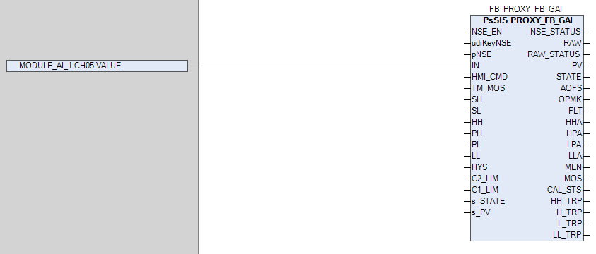 Функциональный блок PROXY_FB_GAI предназначен для интеграции безопасного функционального блока FB_GAI с HMI.