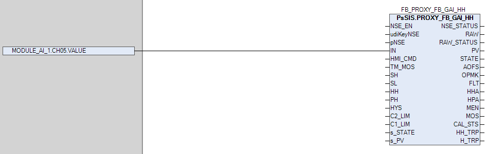 Функциональный блок PROXY_FB_GAI_HH предназначен для интеграции безопасного функционального блока FB_GAI_HH с HMI.