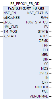 Функциональный блок PROXY_FB_GDI предназначен для интеграции безопасного функционального блока FB_GDI с HMI.