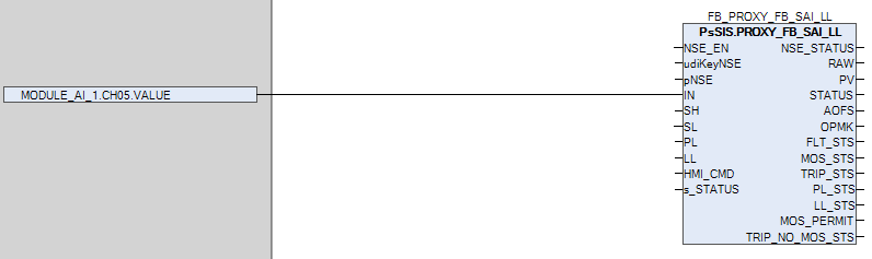Функциональный блок PROXY_FB_SAI_LL предназначен для интеграции безопасного функционального блока FB_SAI с порогами L/LL с HMI.
